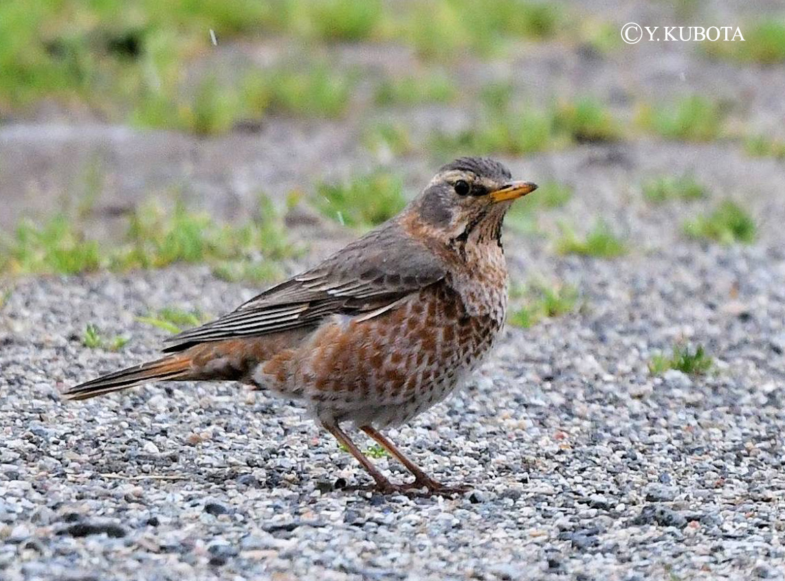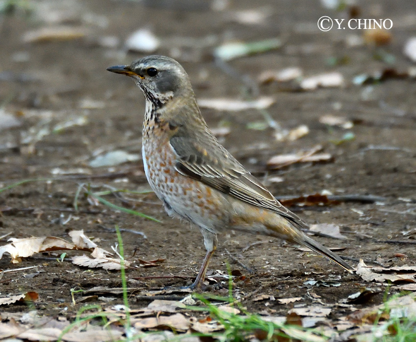 | 【コメント】 こちらは、くぼたくんのお腹のオレンジが濃いタイプ。こちら向きの写真で、良い感じですね。 ハチジョウツグミにはツグミとの中間的な個体もいて、「四畳半ツグミ」などと呼ばれることもありました(過去形)。 昭和ギャグっぽい。(CHINO) | |||