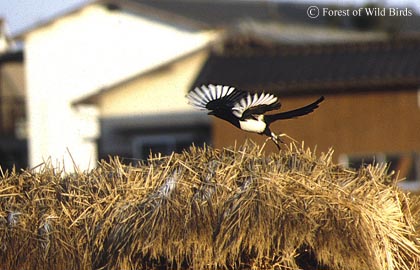 ●カササギ (Pica pica) 佐賀県から北九州地方にいます。 私は鳥栖の駅前ではじめてカササギを見ました。 2003年は佐賀県が流行りましたね。 あの歌を聴きながらカササギを思い浮かべたら一人前です(笑) カササギは、豊臣秀吉が朝鮮半島から持ち込んだ(取り寄せた?)と 言われています。 分布はヨーロッパから北アフリカ、アジア、北米まで広範囲で、 日本に居ない方が不思議という感じなのですが。 九州から分布が広がらないので、人為的に持ち込まれたと考えるのが筋でしょう。 生態的にはオナガと似ており、棲み分けをしているのかとも思いましたが オナガは西日本にはいないんですね。彼らの分布には何か秘密がありそうです。 学名がピカピカというのも怪しいです。 (CHINO)