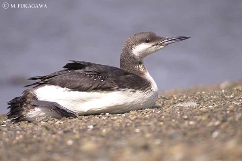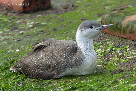 | アビ目アビ科のアビです. なかなか見られない夏羽ではもっと特徴的な色をしていますが, 冬羽ではこのように灰色っぽくなっています. そして,他のアビの仲間と似ており,区別するのが難しいです. 普通,このように陸上に上がってる事なんてなかなかありません. (CHINO) | ||||||||