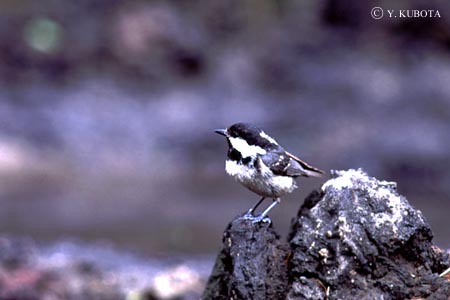 ゴジュウカラとキバシリは、どっちが木登り名人? ん〜悩みますねぇ。この二羽に幹を歩かせたら右に出るものはいません。 ゴジュウカラは上下左右、どんな向きにも自在に歩き回ることができます。 だから、逆さまにとまることもできちゃいます。 キバシリは、下かららせんを描いてくるくると登っていき、 次の木へ移っては、またらせんを描いてくるくると・・・ という動作を繰り返して虫をさがします。 これなら、間違っておんなじ所をさがしてしまうことはないでしょうねえ。 方向の自在面では、ゴジュウカラ、 エサ獲りの効率面ではキバシリに分配あり!! ってところでしょうか? どちらも双眼鏡を使い慣れていないと、追うのが大変!! ・・・では、その木登り名人と、残りのカラ2種を紹介しましょう。(SIMIZU)