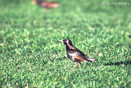 ムクドリもスズメと同様、私たちになじみの深い野鳥です。 私は、家から駅まで歩く途中で、にんじん畑を歩き回るムクドリを見るのが日課のようになっています。 皆さんも、地面の上でミミズや昆虫を採っているところを、一度ならず見かけたことがあるのではないでしょうか? 個人的には、ムクドリのあの歩き方が好きです。 スズメのようにちょんちょんと飛び跳ねるのではなく、 てくてくてくてく・・・と歩き、辺りをきょろきょろとうかがったりします。 飼い鳥の「九官鳥」は、ムクドリ科の鳥なのですが、 電線にとまって「キュルリキュルリ」と大きな声で鳴くムクドリをみると、 (ああ、似てるな・・・)って納得しちゃいます。(SIMIZU) まずは、ムクドリと、ムクドリに習性の似ている2種を紹介します。 (SIMIZU) |