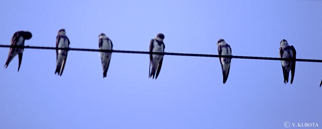 この仲間は、スズメ・カラス(ブト・ボソ)につぐ「身近な鳥」の代表格でしょう。 町中で繁殖するし、巣の場所は一発で誰でも分かるし、巣にいるヒナも見やすいし、お気軽に観察する対象としては申し分ありません。 日本で繁殖するのは、5種で、うちリュウキュウツバメは琉球列島、ショウドウツバメは北海道でのみ繁殖します。 (SASAKI) |