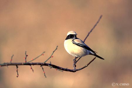 個人的な話ですいません。これが最後の編集になるかもしれないので、ちょっと凝ってみました。 話はノビタキに戻ります。この鳥は、本州でも高原で繁殖するので、 繁殖期に見に行けばきれいな夏羽が見られます。 しかし、繁殖期は梅雨にも重なっていたり、シギチやらアカショウビンやら、 いろいろ見に行かなければならないところが多いので、 近くに良い場所がないと案外見に行けない鳥だったりしますね。 (CHINO) |
