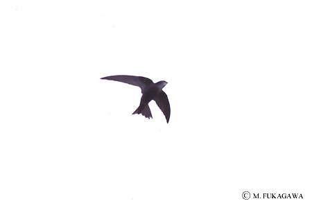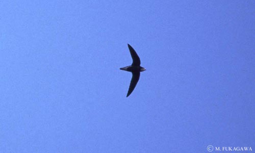 | お〜,ちゃんと写ってる〜. アマツバメの中では最大で,喉と尾の下側が白いので区別できる. 私は,尾瀬の上空で見たのが最初でした. (CHINO) |